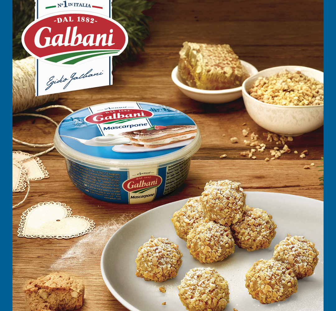 Ridurre i cantucci in briciole con un frullatore. Versare quindi i cantucci in una ciotola con il mascarpone, lo zucchero e il miele, quindi mescolare il tutto fino ad ottenere un impasto omogeneo.